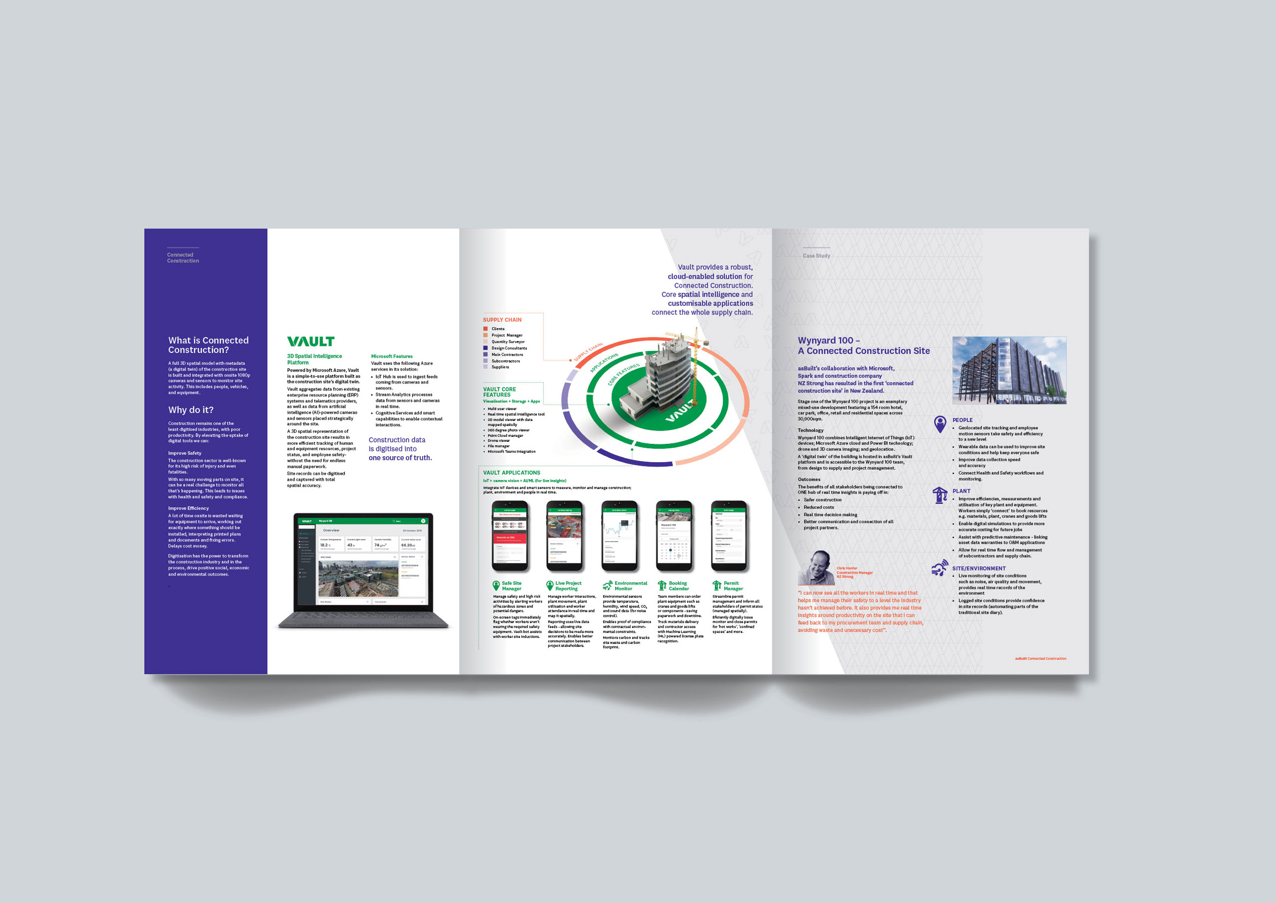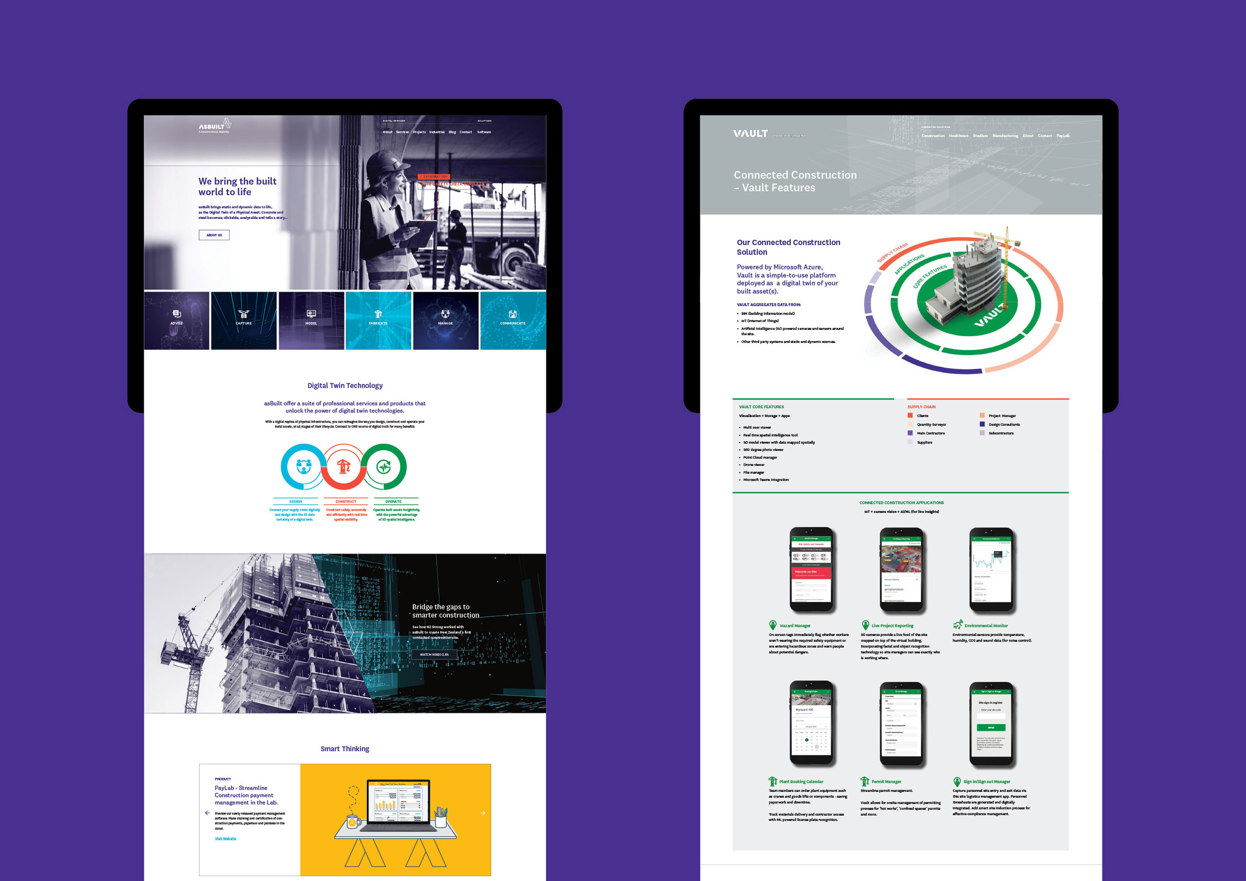 We were recommended by Microsoft, to help asBuilt upgrade from a one page website and an outdated identity system, to build them an engaging brand platform and credible sales tools. We rebranded the organisation from head-to-toe and created parent and child brands for the digital services side of the business, as well as the software brands: Vault and PayLab. The team started with grass-roots brand workshopping to establish purpose and story, getting staff onboard with vision, purpose and values. We then developed a new purpose-driven narrative and commenced rolling out new sub-brands, a comprehensive website(s), marketing content and moving content.