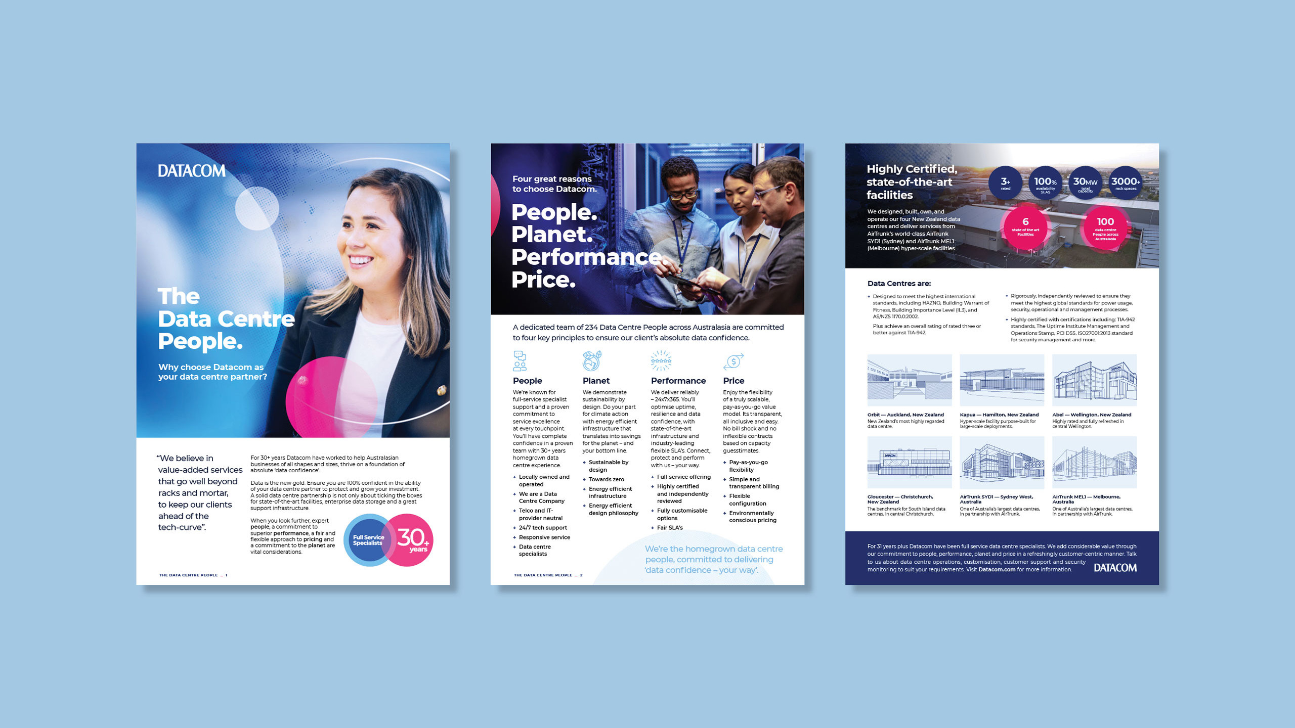 Clear, crisp messaging across collateral, website content, and marketing materials consistently reinforced the "Data Centre People" positioning and four-pillar framework, establishing Datacom as the human-centred choice in a technical category.