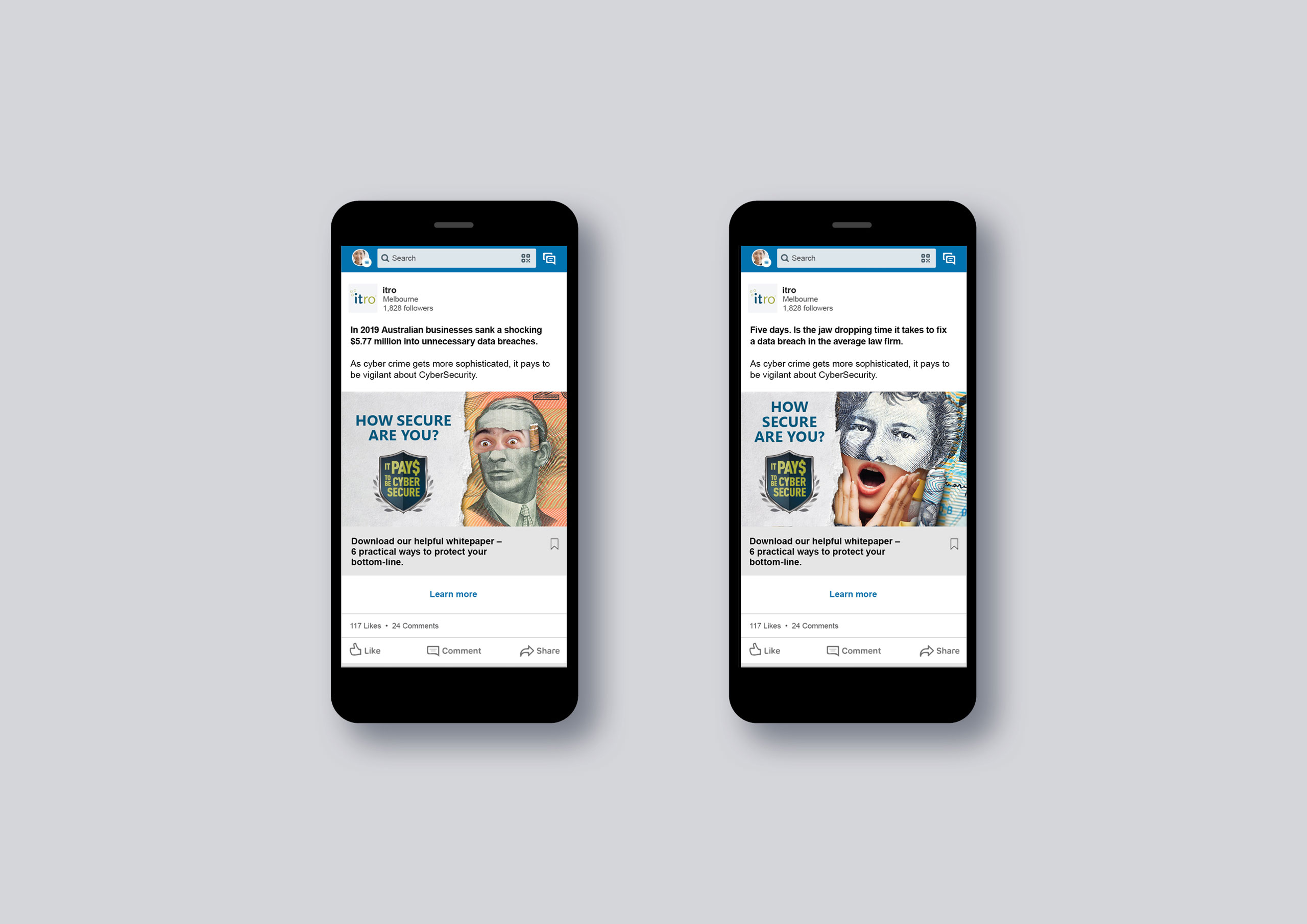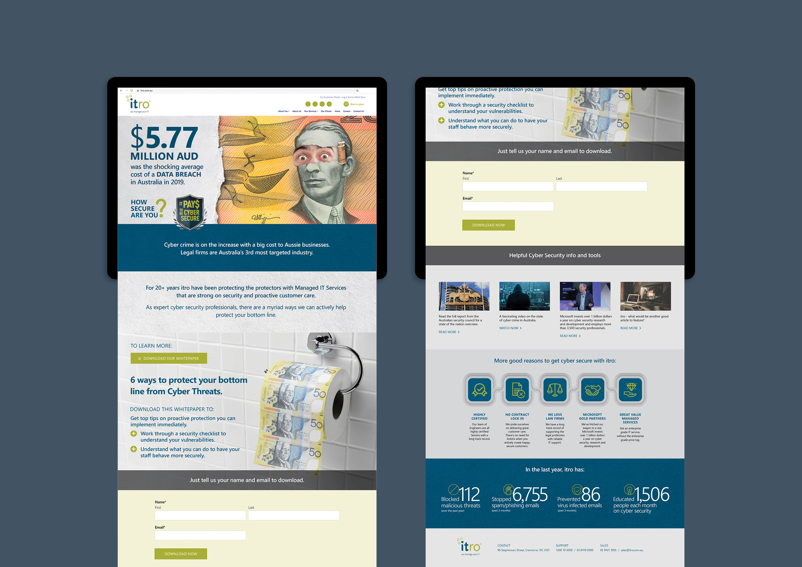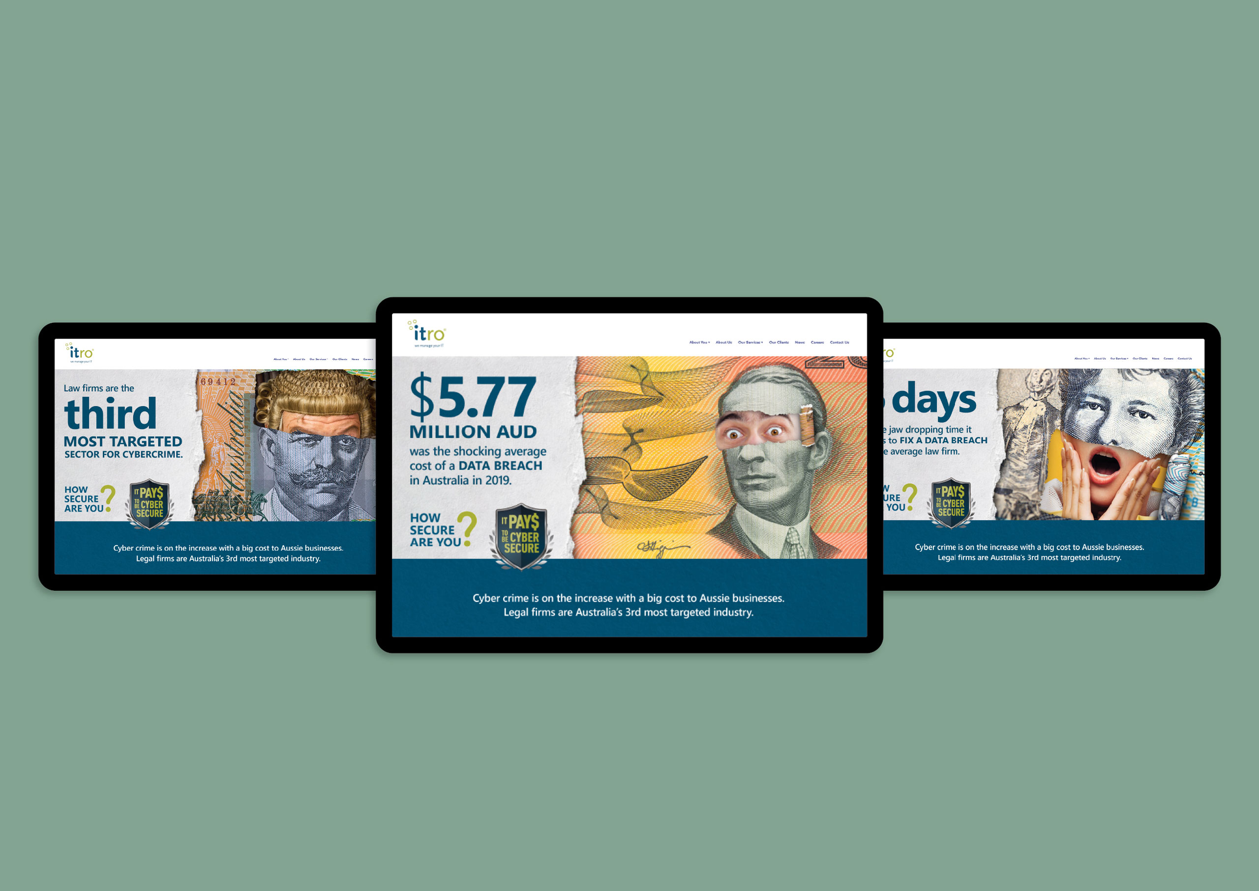 To convey the importance of cyber security in a provocative, unique way we made this rather dry topic engaging, using the concept of money and shocking statistics to talk to the campaign idea: It Pays to be Cyber Secure! Photoshopped currency was the hero and a tongue in cheek humorous approach was taken to underscore the savings to be made by prioritising cyber security.