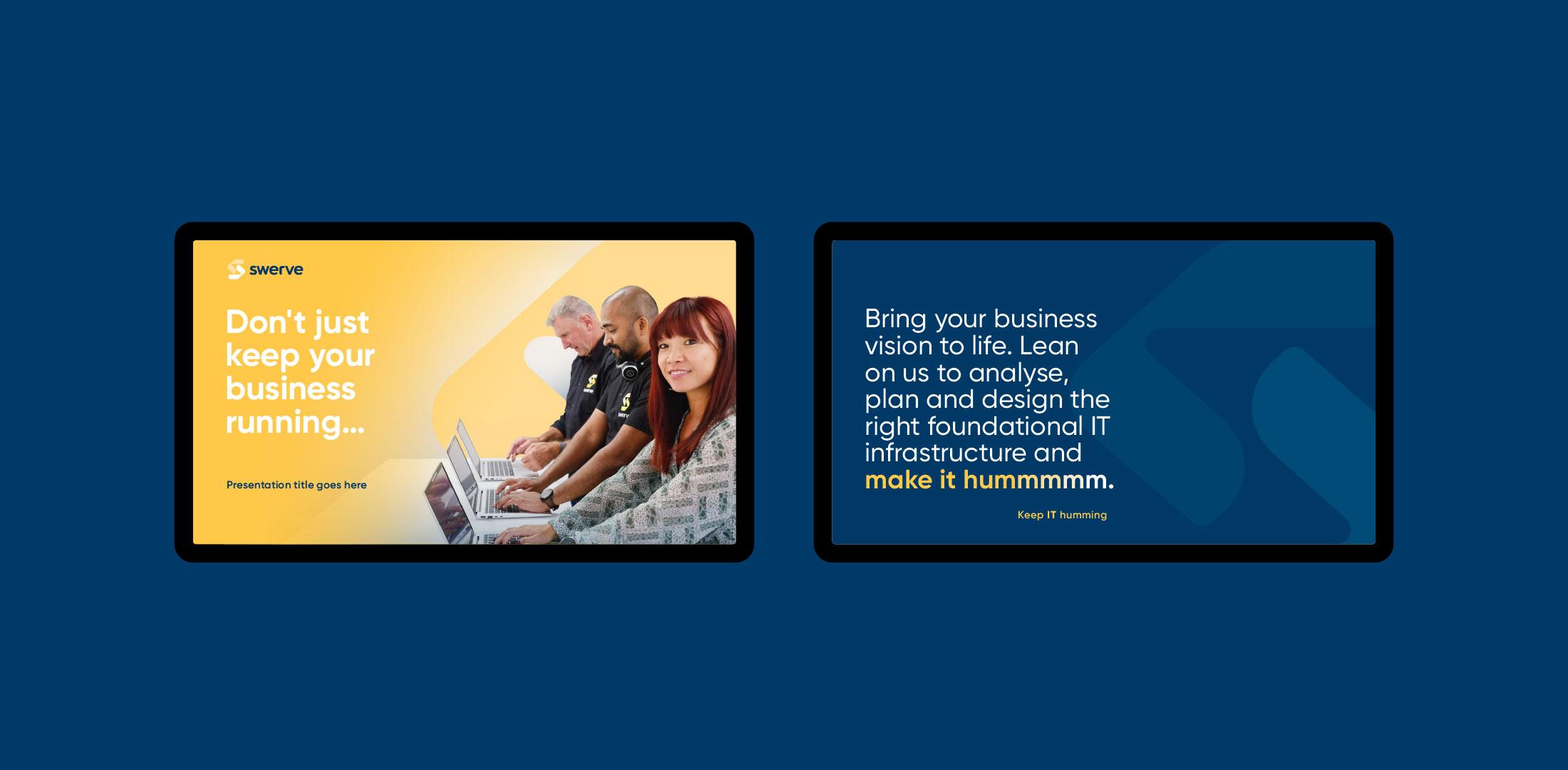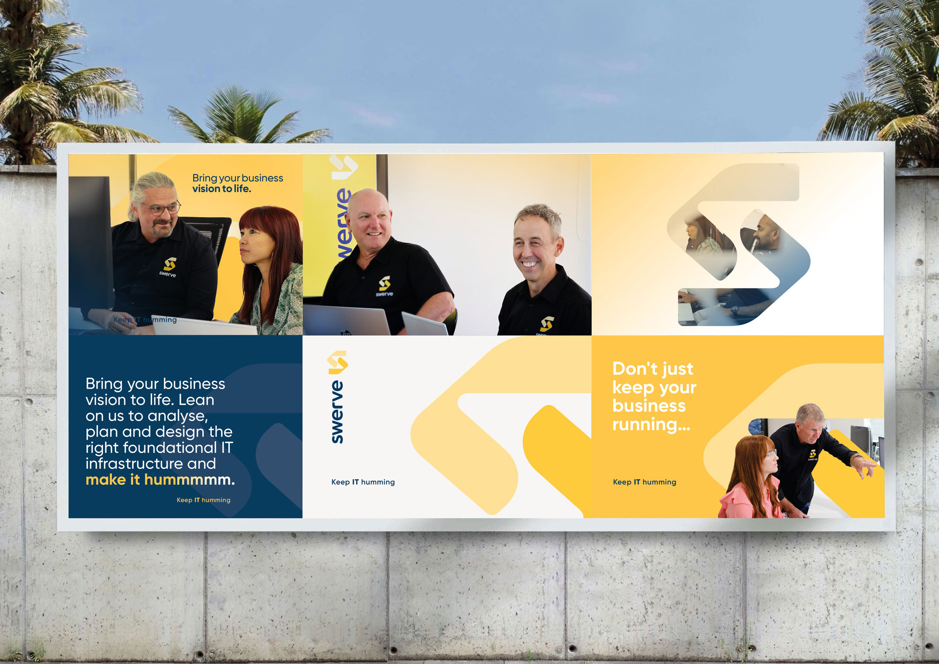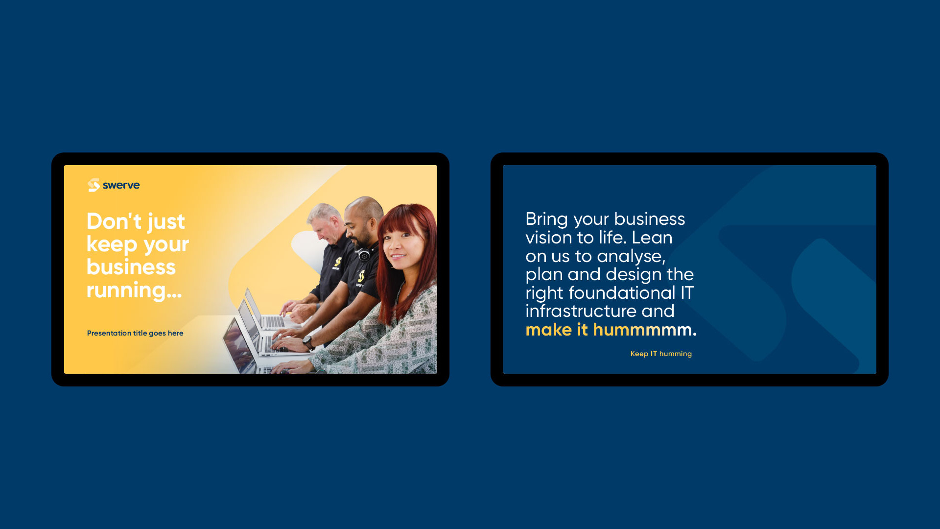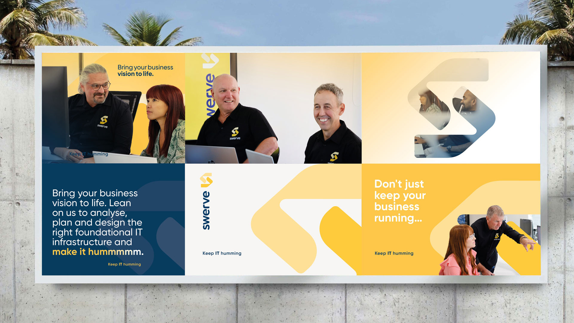 The Make it Hummm campaign introduced the new brand with a bold visual direction, launch video and photography, web redesign, and an eDM and social media rollout that positioned Swerve as trusted IT partners who help businesses thrive.